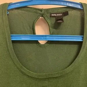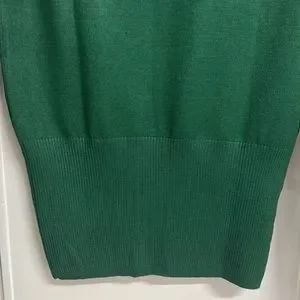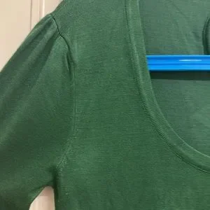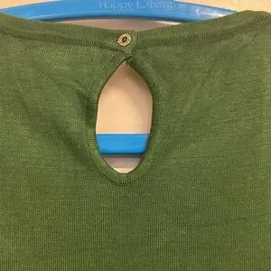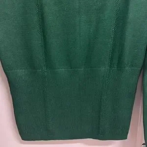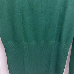 A very smart , elegant Mango stretchy , light sweater in Green with long sleeves and a pretty U-neck with a pinhole button opening ar the back ! Cost , warm & soft !Not worn - only hanging in my closet ! Very versatile - can be layered with anything to give a smart look!