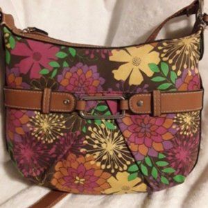 Pretty 70's Hippie Flower Power style cross body purse. Features lots of colorful flowers and leaves. Never used.