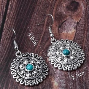 Any 2/$20! Silver Dimpled Boho Turquoise Drop Earrings