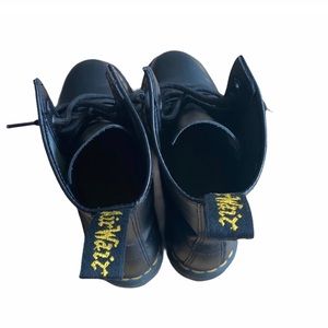 Doc Martens (Dr. Martens) 1460 smooth leather boots with 8 eye hook lace up. Classic combat boot style.