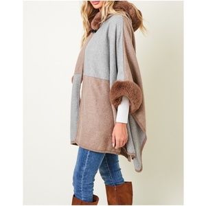035 Cozy Vegan Fur Color Block Hoodie Jacket Coat