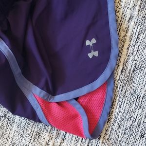 - Purple & pink UA shorts Size XS, inside label wearing off