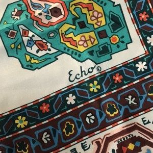 Intricate Vintage Rolled Edge Echo Silk Scarf/ Table Accent.