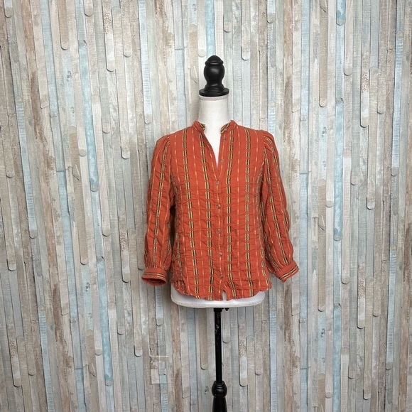 Anthropologie XS Pilcro The Bella Femme Buttondown Shirt Top Embroidered Orange