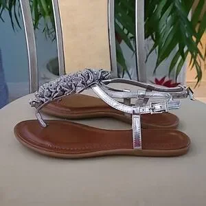 Brown and silver t-shirt sandals, in good condition just a small sign of glue inside (see pictures), size 7B