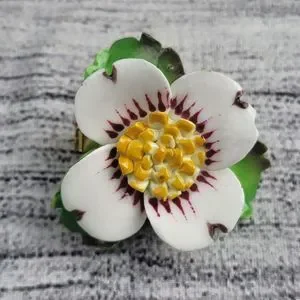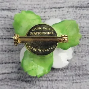 Vintage Cara China Staffordshire White and Purple Flower Brooch Made In England