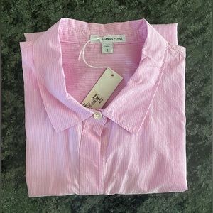 NWT! James Perse Button down shirt , pink /white pinstripes , size 2 .