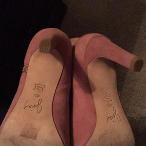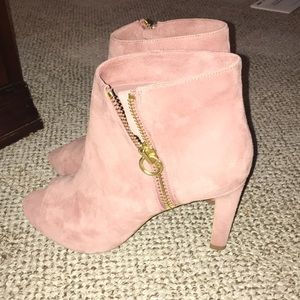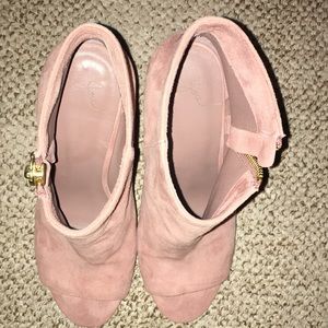 JOIE REAL SUEDE BLUSH COLOR PEEP TOE LEATHER SOLED EUC BOOTIES WORN 1x size eu40