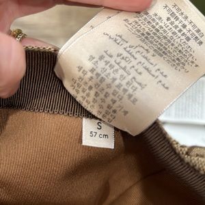 I’ve had this hat for a while, worn a couple times. Has a little bit of makeup on the inside (forehead area) which obviously does not affect how it looks in anyway beings it’s in the inside. Other than that, it’s still like brand new. It’s just not my style. Comes with box, dust bag, the paper that was inside- everything it came with! I always keep all the tags & boxes for my stuff!