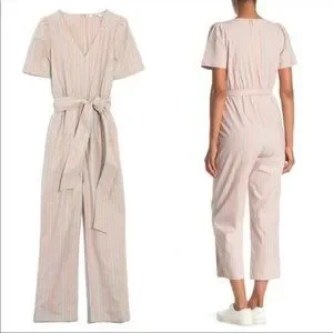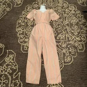Madewell Pink Striped Linen Jumpsuit, Size 4