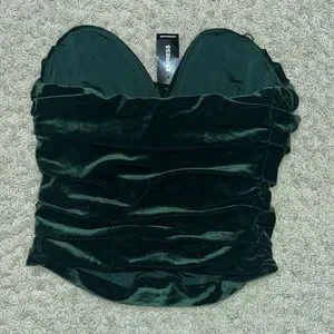 🆕 NWT Express Bodycon Forest Green Velvet Cowl Neck Corset Top in Womens size S