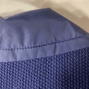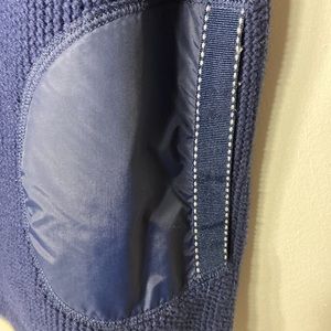 Zip up front, 2 side pockets, drawstring around the collar, knit sweater material great condition