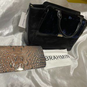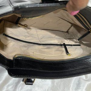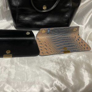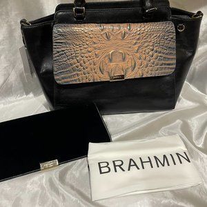 Brahmin ROBIN Leather Satchel Black Topsail Handbag Interchangeable Flaps X 2