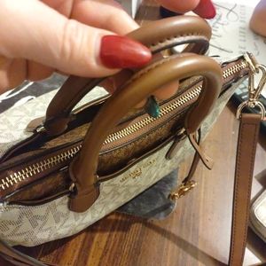 gently used condition, used about 3 months, I take excellent care of my bags, outside clean and strap + handles are perfect makeup marks inside, mark on the corner of wallet, and 2 small marker spot on bottom of bag, priced accordingly