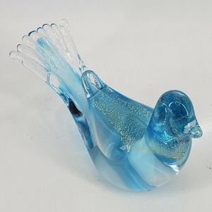 Hand Blown Art Glass Aqua Blue Gold Aventurine Bird Dove Figurine