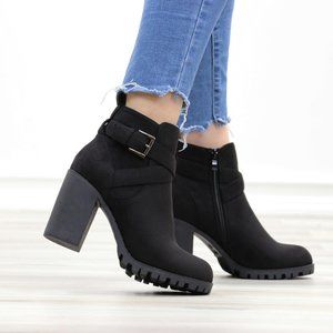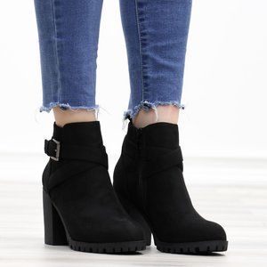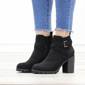 Faux Suede Black Lug Sole Ankle Boots