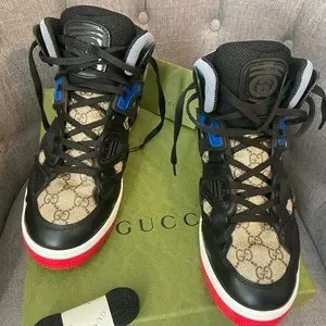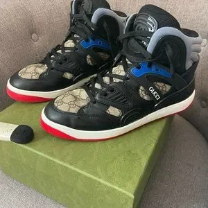 Sporting a look synonymous with basketball sneakers from the ‘90s, the House introduces the newest rendition of the lace-up sneaker—Gucci Basket. This high-top style emulates the self-expression of on-court aesthetic with distinctive features and detailing. The high top sneaker is crafted from a mix of GG Supreme canvas and black Demetra. Created with the same processes used for tanning, the new material offers pliable and resilient performance with a supple finish. The eco-friendly material combines animal-free raw materials primarily from sustainable, renewable, and bio-based sources.