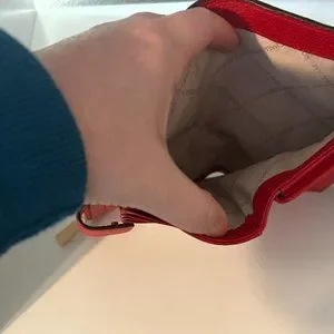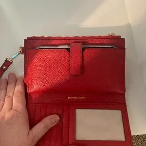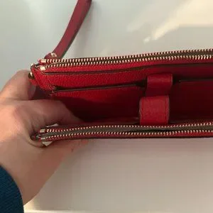 Purchased from Macys in March 2021. Used maybe twice. EUC, True Red color, gold accent hardware. Holds a brand new iPhone14 with Otterbox case with room to spare!