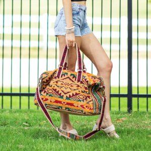TAGS - Boho Bohemian Boheme Hippie South Western Southwest SouthWestern Navajo Ethnic Native American Overnight Duffel Duffle Weekend Tote Quality Workmanship Christmas Gift Vacation Trip winter summer spring fall seasons