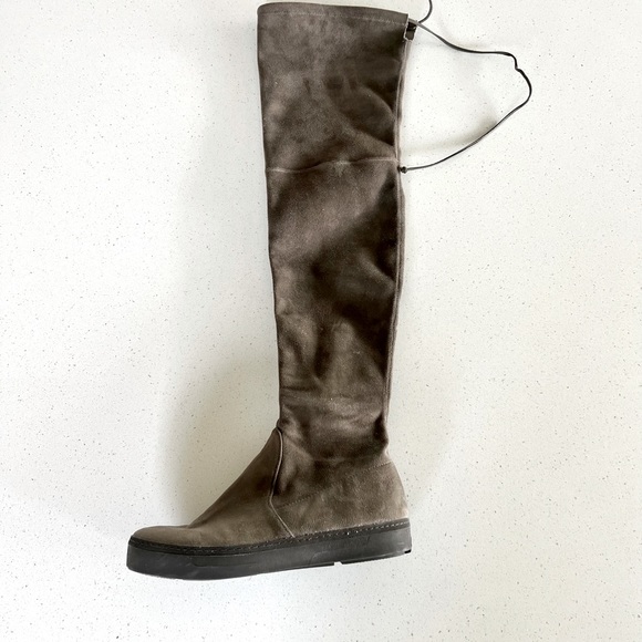 Beautiful boots!! Great condition! Taupe brown suede, with black rubber sole. Over the knee, has some stretch.
