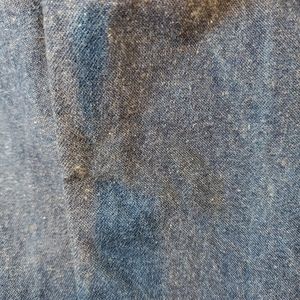 Some pilling throughout. One dark stain on left knee, hard to notice due to the med/dark wash. Carpenter loop has been removed. Pre-owned in good condition. No holes.