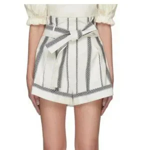 Acler RRP$295 'kingsway' Belted Diamond Grid Stripe Shorts white, grey/blue (6)