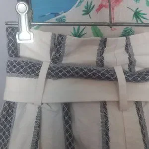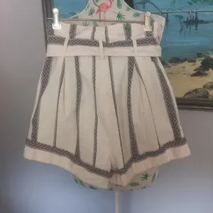 Acler designer 'kingsway' Belted Diamond Grid Stripe Shorts white, grey/blue with pockets and pleated waist band