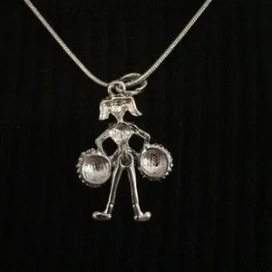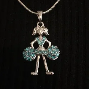 Vintage Silver Tone Cheerleader Necklace with Blue Aqua Color Crystals Stones