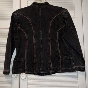 Very high quality jacket features coppery buttons and rose colored contrast trim. Even the trim on the inside is pretty. Approximate measurements in inches laying flat: pit to pit 18, length 22, sleeve length 20. Excellent like new condition. Smoke free home.
