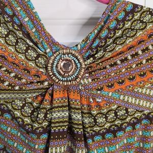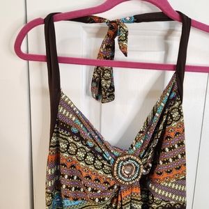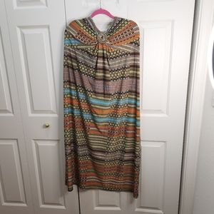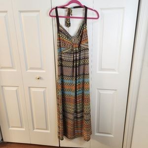 Mlle Gabrielle Women's 2X Maxi Dress Multi Color Tie around Neck