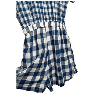 New Mainstrip Gingham V Neck Tie Wrap Front Romper Plaid Blue S