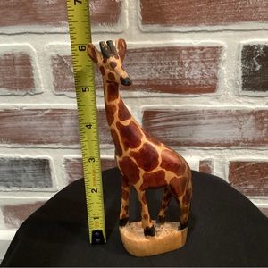 This is a solid wood hand carved Giraffe that would make an excellent display piece. Overall it’s in really nice condition.