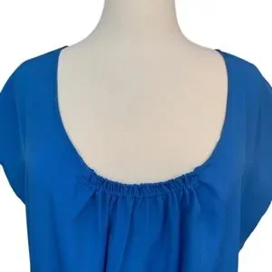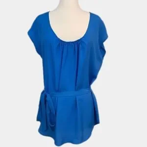 NY & COMPANY Tunic Top Blouse Belted Bohemian Flutter Cap Sleeves Blue Medium
