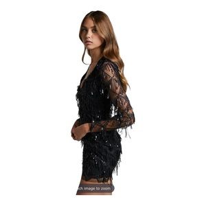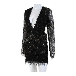 NWT BY THE WAY x Revolve Black Sequin Fringe Long Sleeve Mini Dress XL Cocktail