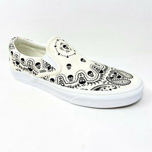 Vans Classic Slip On (Bandanas) Classic White Black Skulls Womens Shoes
