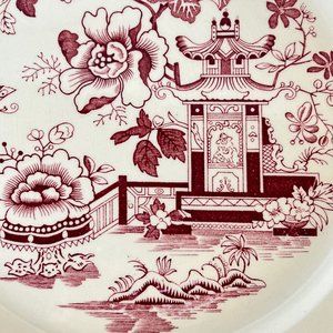 Vintage Taylor Smith Taylor Red Asian Design Dinner Plate 10” Crazing