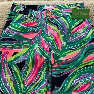 Lilly Pulitzer Braylen Palazzo Pant in ‘Don’t Leave Me Hanging’ Bright Navy. Gorgeous pattern, super cute, super flattering. Wide straight leg. Front zip and button closure. Pockets, belt loops. Laying flat waist approx 13.5” across. 34” inseam. Approx 7” front rise. 95 rayon 5 spandex. Size 00. NWT. #1319