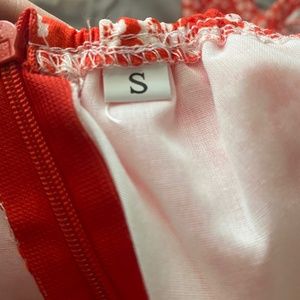 women's romper, red with white flowers, flowy, size small, great condition, super cute