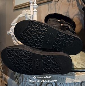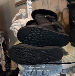 Inspired by Russian royalty and a trip to Moscow Australia Luxe Collective worked to incorporate the luxurious Russian style into a decadent stylish comfort called the Australia Luxe Tsar Boot. Complimentary deep plush black Coyote fur adorns a rich black sheepskin boot. Two solid logo buckles and Coyote fur trim make this Australia Luxe boot a must have item.