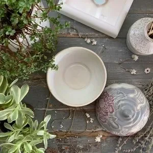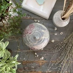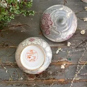 This piece has a beautiful hand-painted floral pattern that the Toyo company cherish as one of their signature designs. This piece comes with a ergonomicatlly perfect handled lid to place on top of its matching bowl. Excellent for storing your favorite candy, storing your jewelry, or simply keep as a catchall at your entryway for loose change, keys, or even your dogs favorite treats. The possibilities to this porcelain beauty are endless. What a great gift to give to the new home owners. Gorgeous.