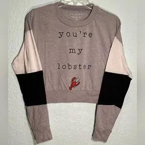 This FRIENDS You Are My Lobster Quote Long Sleeve Graphic Color Block Cropped Tee is in Excellent Used Condition and Perfect For A Cozy Casual Date Night or Valentines Day! It is Made of a Soft and Stretchy Cotton/Polyester Blend Fabric and is a Size Medium. Dimensions are approximately 16” Shoulder to Shoulder, 22.5” Shoulder to Wrist, 18” Across The Back Bottom Side Seam to Side Seam and 17” Top to Bottom Down the Back Center