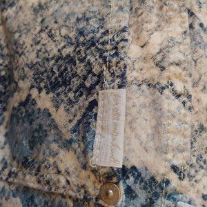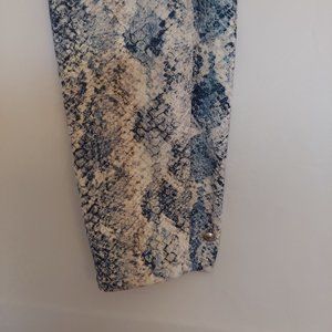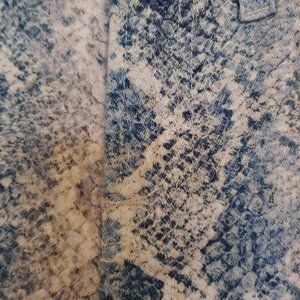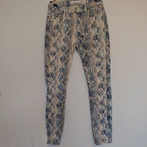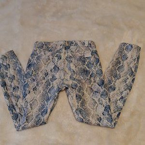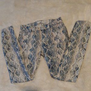 7 for all Mankind. Blue, white and gray combo snakeskin pattern. Skinny leg. Size 24. measurements waist 26" inseam 26". 97% cotton 3% elastin. Has slight stretch.