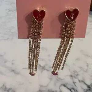 NEW JUICY COUTURE HEART JEWELED DANGLE EARRINGS NWT