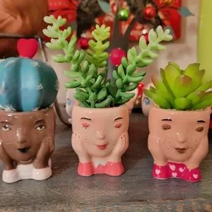 I think these would be adorable for Christmas with a bottle brush tree inserted instead of the succulent.