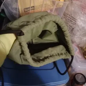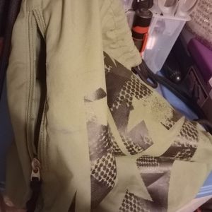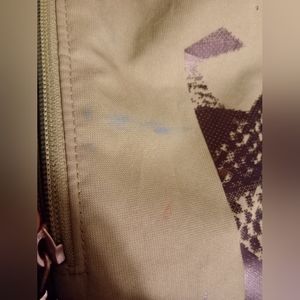 GREEN NIKE DRAWSTRING BAG AND NIKE TRACK AND FIELD SHOEBAG color stains on green bag as pictured. Black bag is like new. Green bag is very thick material and has a very sturdy zipper pocket your phone keys or whatever won't be flopping around inside the bag.