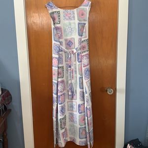 Vintage Slip Dress Tie Back Pastel Floral pink purple white Maxi made in USA M