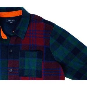 Tommy Hilfiger Men's Size XL Blue Red Plaid Shacket Shirt Button Front Cotton Blend