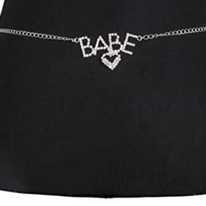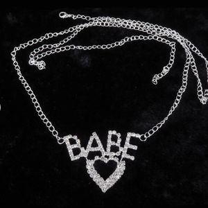 BABE Y2K 2000s Rhinestone bling Silver Heart Waist Belly Chain Belt - Baddie Aesthetic - Bratz 00s - Sparkly Belt Barbiecore Barbie core Summer Bathing Suit Jewelry Letter BABE Belly Body Chain