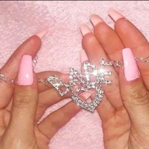 BABE Y2K 2000s Rhinestone Silver Heart Waist Belly Chain Belt Festival Concert