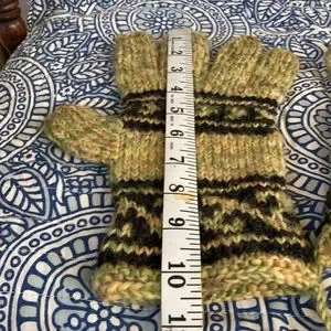 Sage, ecru, dark chocolate brown in color. Measurements approx shown in pics. Great condition!